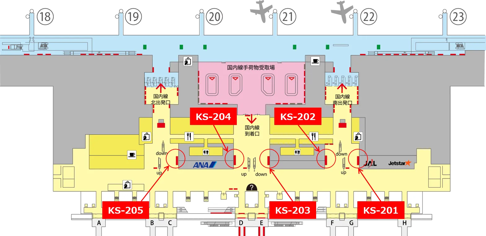 ■第1ターミナルビル2階国内線南北出発・到着ロビーKS-201~205の魅力・特徴