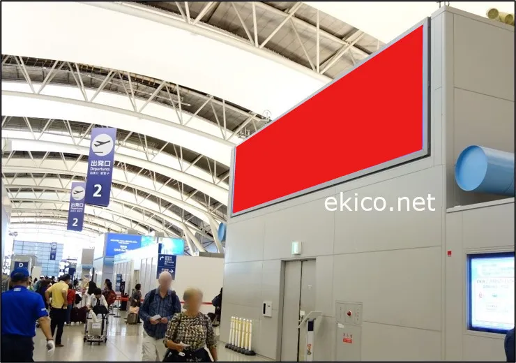 第1ターミナルビル4階の出発口周辺に設置されている大型の電照看板広告です。