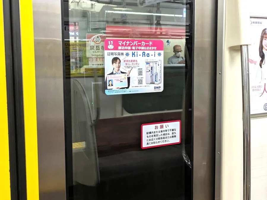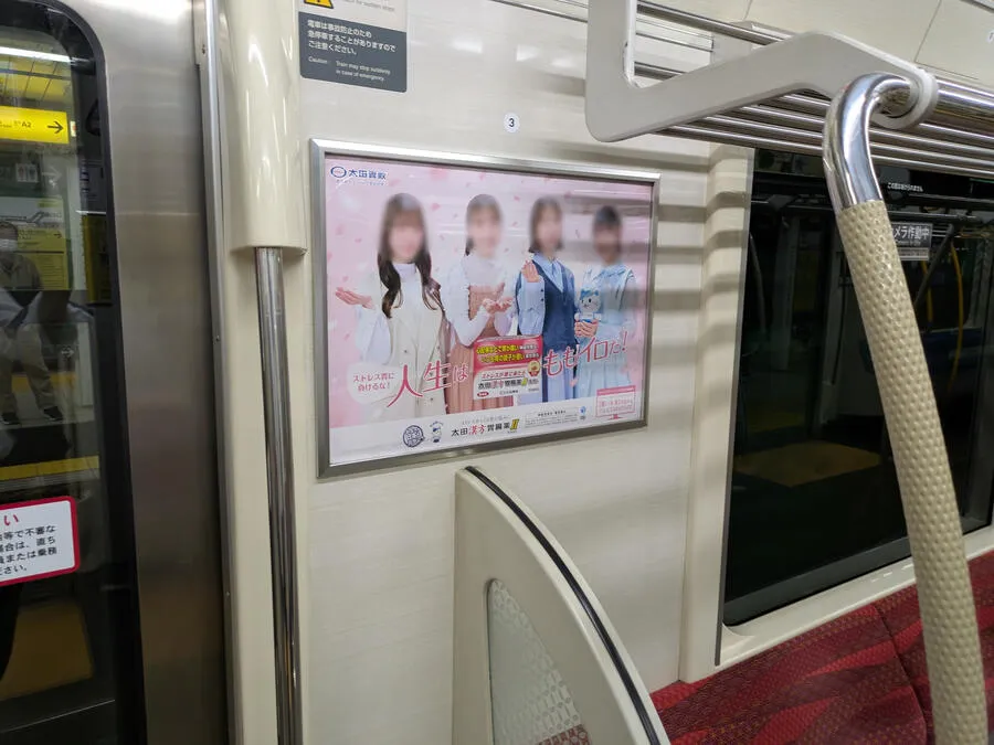 乗降ドアの横に掲出されるポスターで、乗客が電車を待つ際や乗り降りする際に自然と目に入る位置にあります。注目度が高く、詳細な情報を読んでもらいやすいのが特徴です。新サービスの紹介や、Webサイトへの誘導などにも効果的です。
