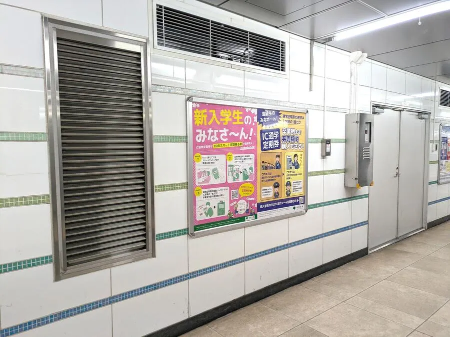 駅の壁面や柱などに掲出されるポスター広告です。1枚からでも掲出でき、比較的安価に始められるため、駅広告の入門編としてもおすすめです。複数の駅に同時に掲出することで、エリアを絞ったキャンペーンなどにも活用できます。