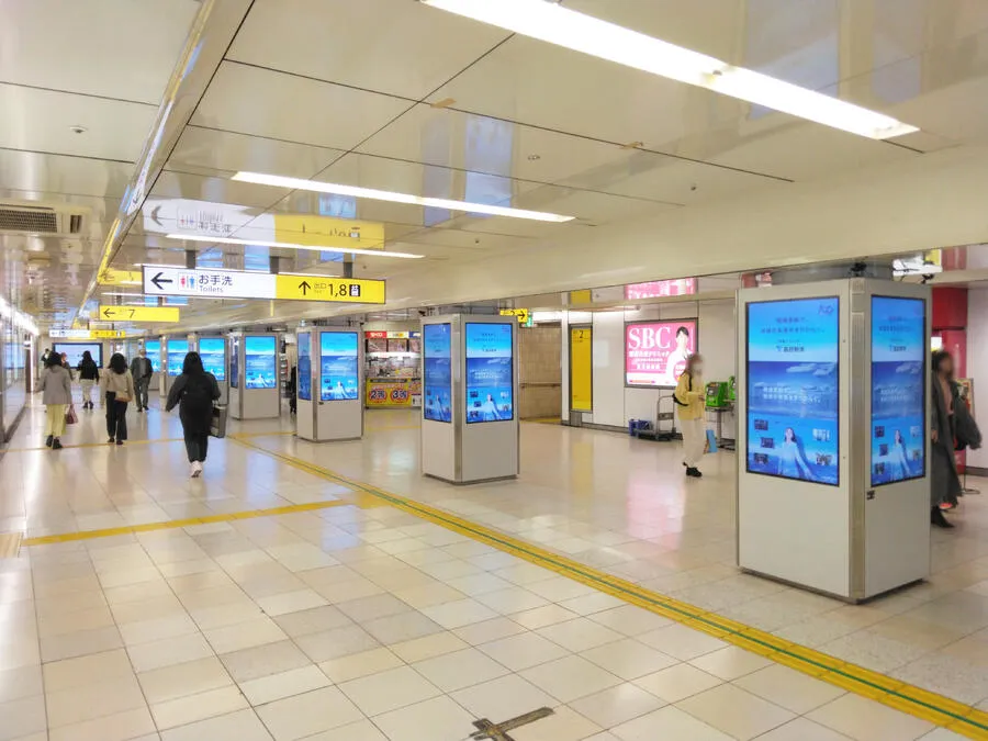 近年注目を集めているのが、駅構内に設置されるデジタルサイネージ広告です。動画を使った訴求が可能で、静止画のポスターでは表現できない情報量とインパクトを持っています。