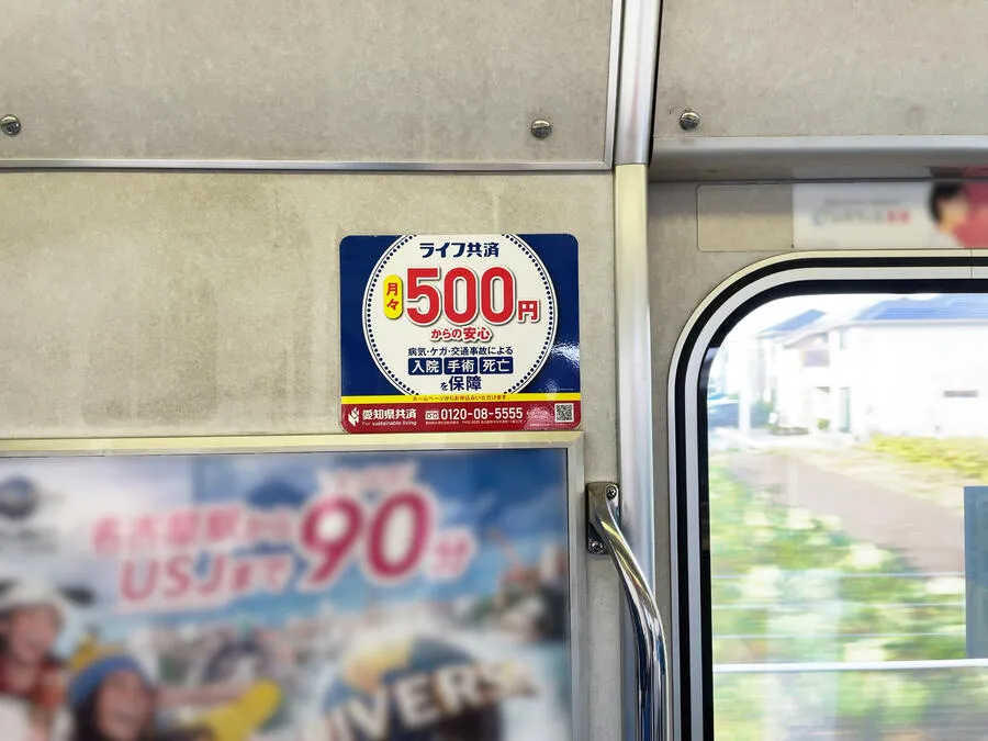ドア付近に掲出されるステッカータイプの広告です。目線の高さに近く、他の広告と比べてサイズが小さいため、印象的なデザインやキャッチコピーで注意を引くことが重要になります。乗客との物理的な距離が近く、親近感を与えやすい媒体です。
