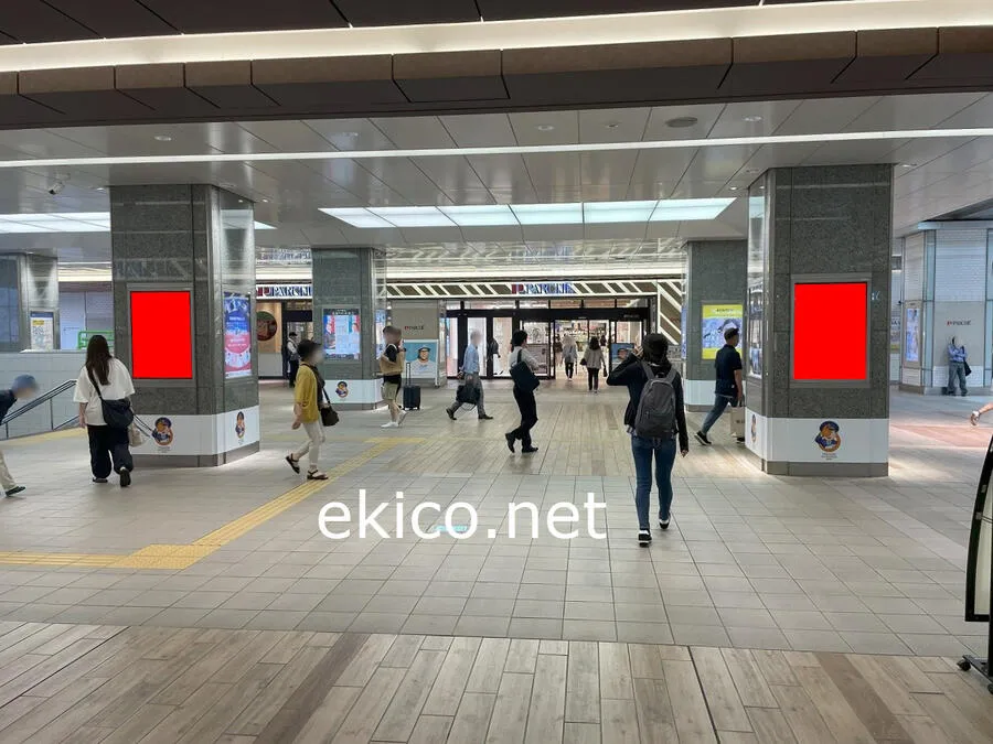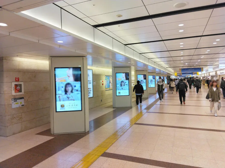 駅のコンコースにある柱や天井から吊り下げる広告です。利用者の動線上に連続して設置することで、空間全体でジャック感を演出し、特定のメッセージを繰り返し訴求することができます。イベントの告知や、季節ごとのキャンペーンなど、駅を訪れた人に特別感を印象付けたい場合に有効です。