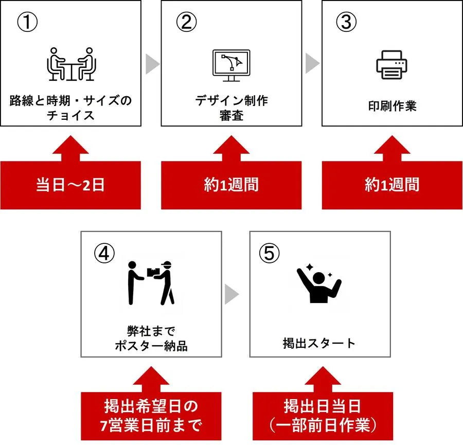 中吊り広告を掲出するまでにはどのようなプロセスを経る必要があるのでしょうか。