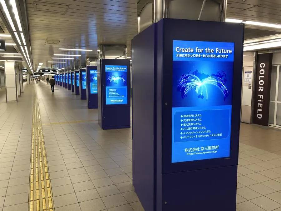 駅構内や通路にはデジタルサイネージや大型の駅看板が設置されており、インパクトのある広告展開が可能です。