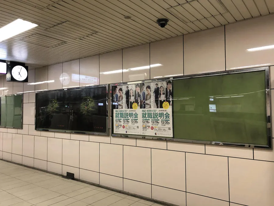 駅ポスターは駅構内やホームの壁に設置されているので、利用者の視認性も高い広告媒体です。さらに、東梅田駅はポスター枠が少ないので貴重な広告媒体です。