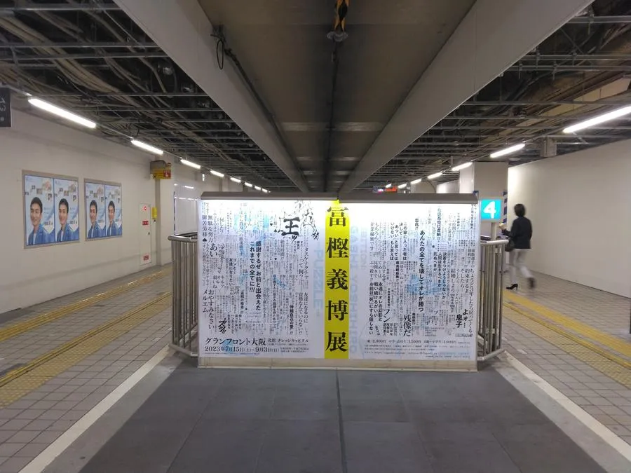 最近ではグランフロント大阪で開催された、「富樫義博展」の開催告知が行われていました。この展覧会のPRは阪神大阪梅田駅だけではなく、阪急大阪梅田駅でも実施されており、人通りの多いターミナル駅を中心に展開されていました。また、この広告展開はX(旧Twitter)を通じての公式アカウントから拡散されていました。リアルな現場とSNSの両面からの広告展開を行うことで、イベントを知ってもらおうという戦略が見られました。