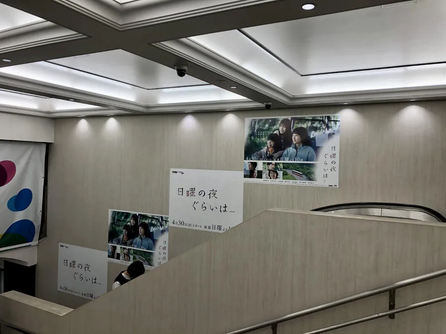 改札を出た先にある階段の側面に掲出できる広告媒体です。遠目から見ると1つのビジュアルに見えるような広告展開が可能で、ユニークな広告媒体です。