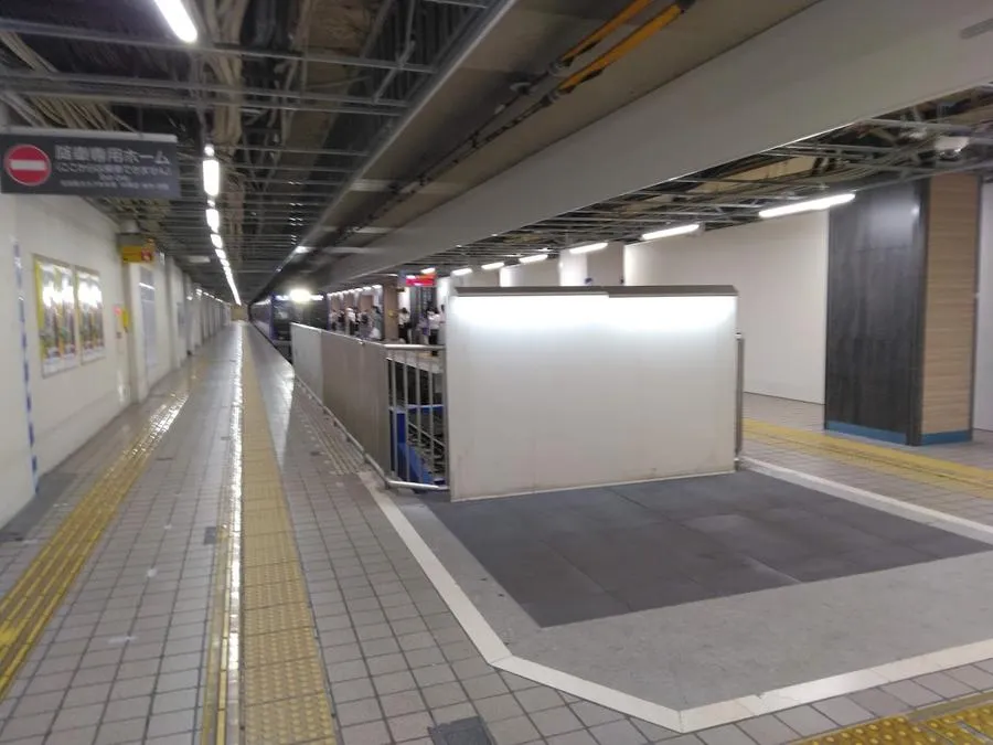 東口改札に入ると、電車止めの壁面があります。この場所を利用してポスターやシートを貼ることができます。駅工事のため、利用できる場所が限られていますが、改札を入って正面にあるので、視認性が高い広告媒体です。