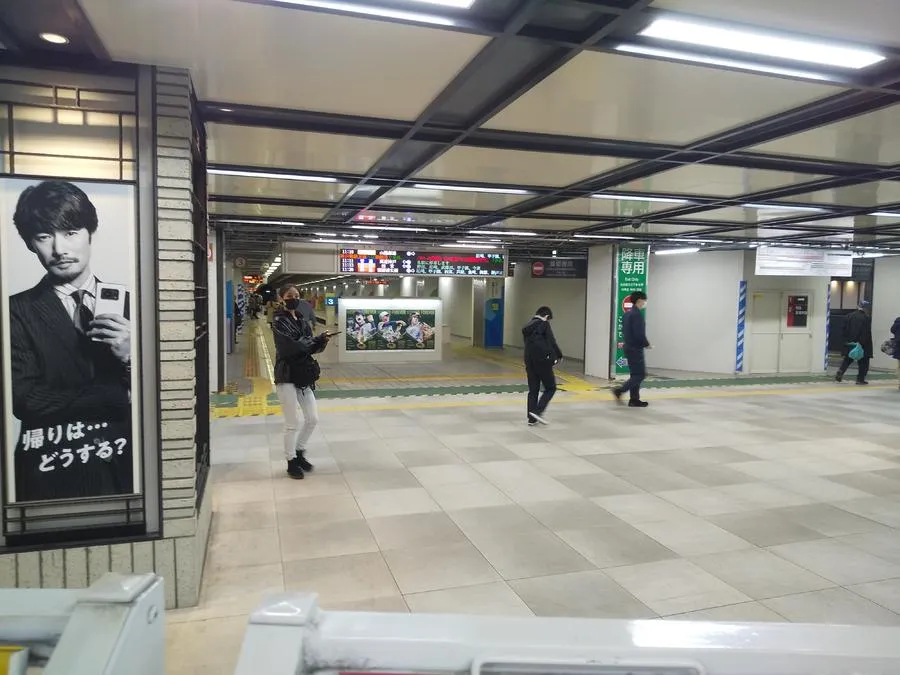 工事中の駅構内ですが、4番線の各駅停車ホームの壁面には看板が設置されています。駅看板は6ヶ月間~1年間の掲出期間となっているため、長期的なPRにおすすめです。