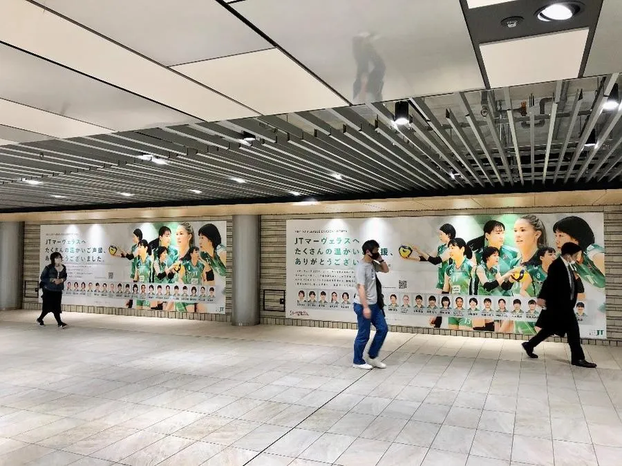 バレーボールチームのPRでチームの所在地である梅田に広告を出していました。また、練習は西宮市の体育館を使っているため、梅田のみならず、阪神沿線の駅にも広告出稿を行っていました。