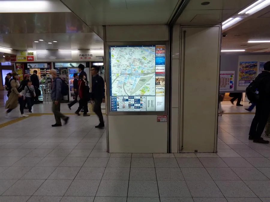 ここからは阪神大阪梅田駅にある広告とその特徴をご紹介します。改札内外にさまざまな広告媒体が設置されています。また、駅からの人通りが非常に多い、東口改札に主要な広告媒体が設置されています。数が多いので、おすすめ順にご紹介していきましょう。