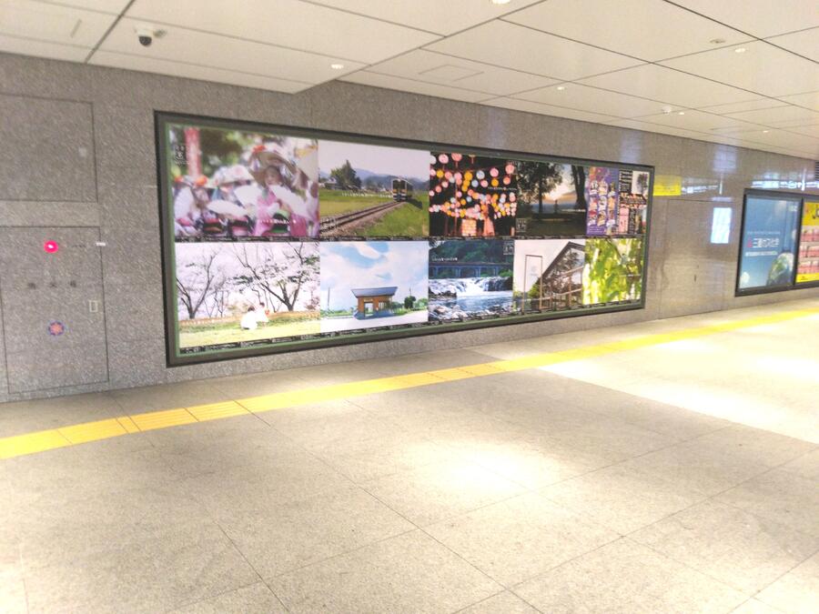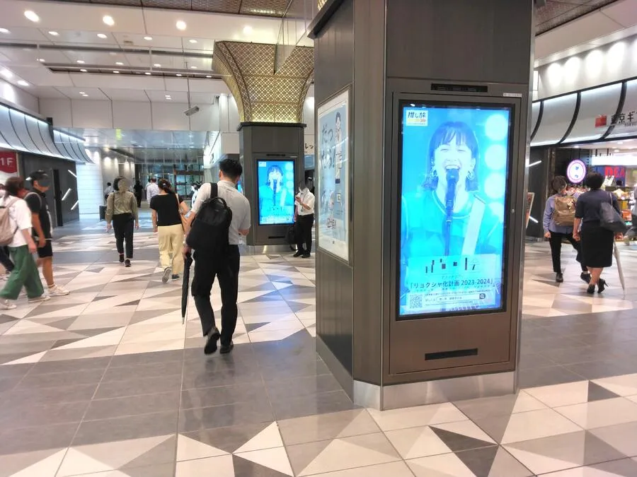 近年の駅広告で主流となりつつあるデジタルサイネージ広告。他のメディアやした動画素材を流用することもできるので、紙媒体と違って新たに製作費がかからない点もメリットです。大型ビジョンや多面展開の媒体は特にインパクトもあり効果的です。