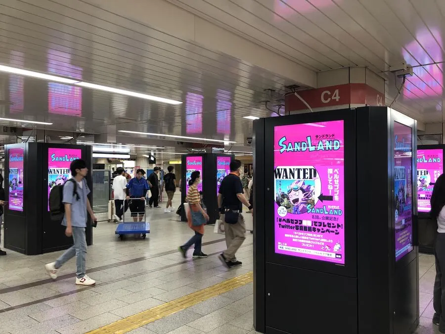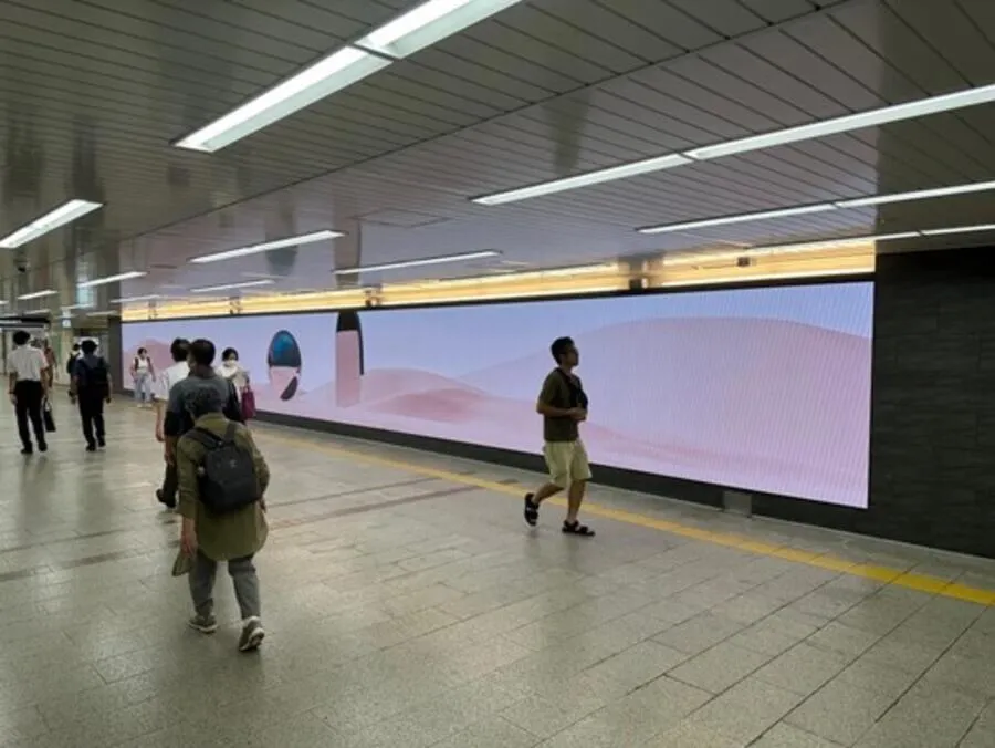 御堂筋線なんば駅の改札外コンコースに設置されているデジタルサイネージ広告です。