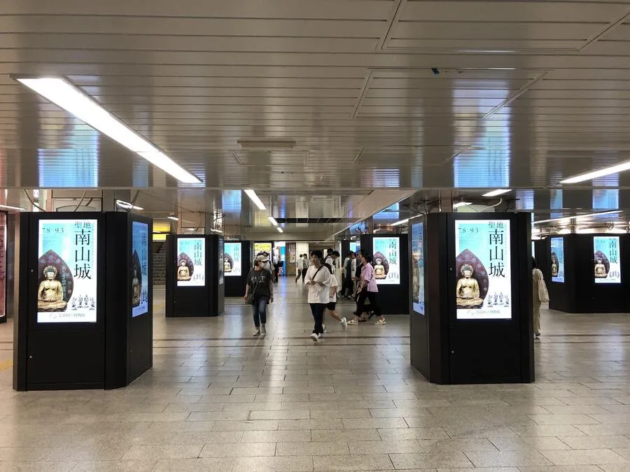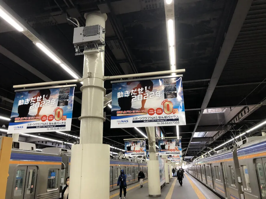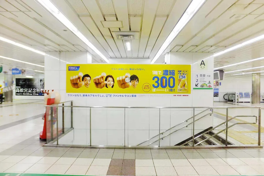 近鉄大阪難波駅には、単貼ポスター広告から大型ポスター広告まで幅広い種類の広告媒体があります。