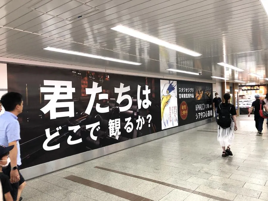 近鉄大阪難波駅の東改札外の壁面に設置されている大型シート広告です。