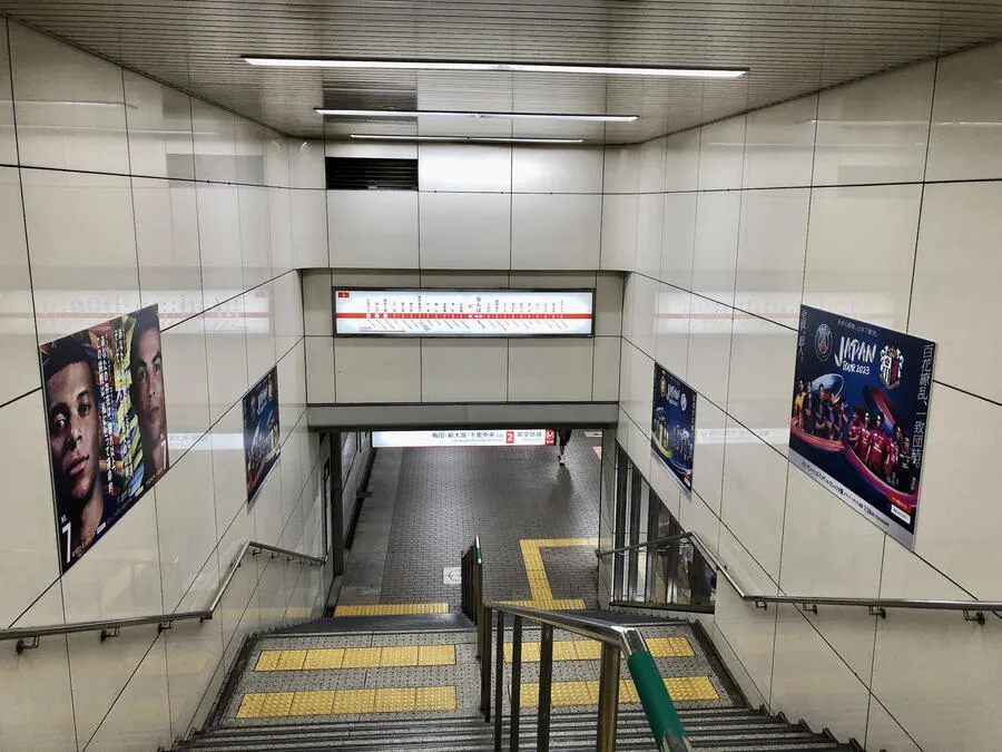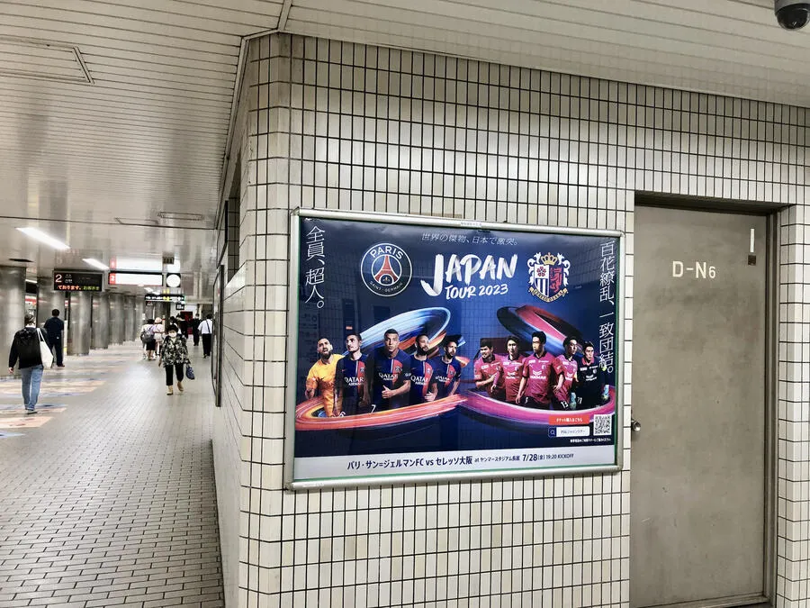 御堂筋線なんば駅の南北自由通路(改札外)に設置されている大型ポスター広告です。