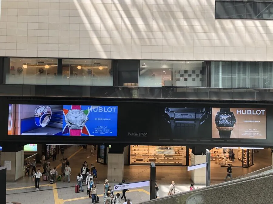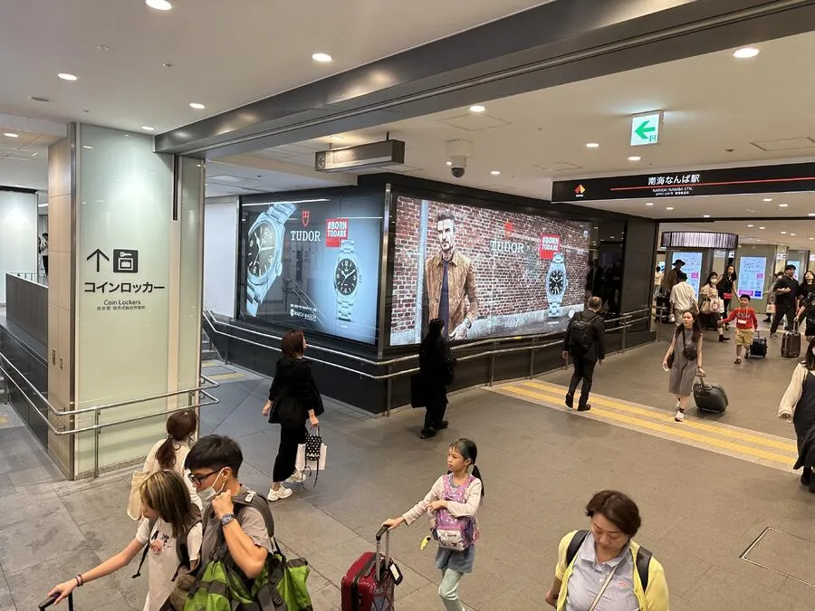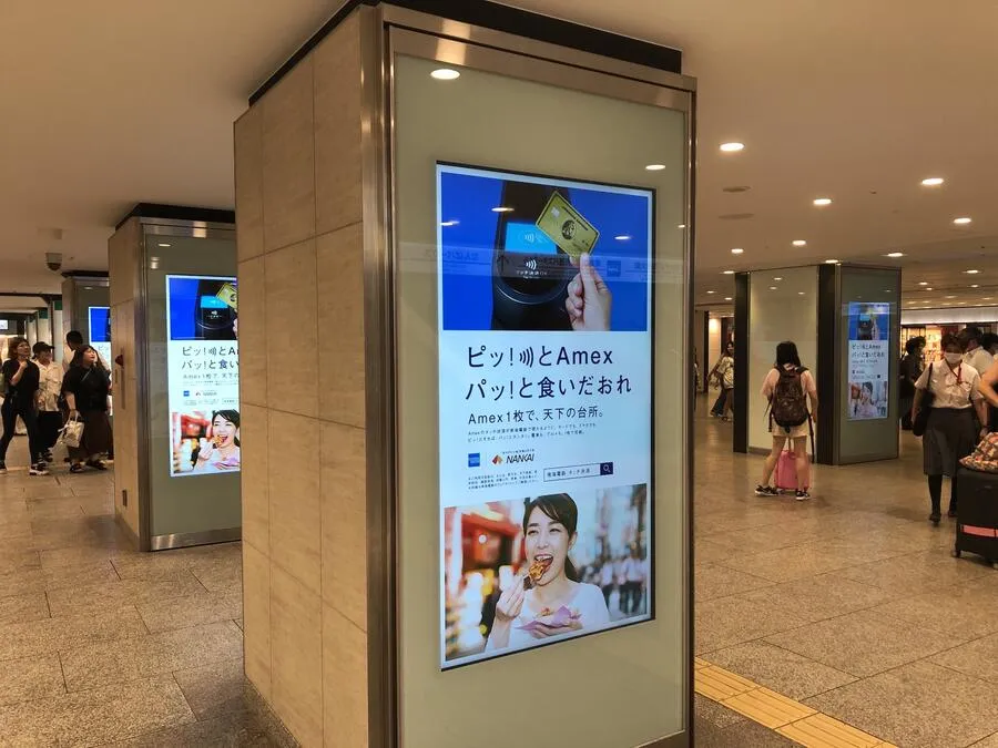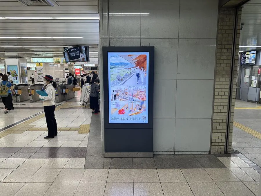 近鉄大阪難波駅の東改札外に設置されているデジタルサイネージ広告です。