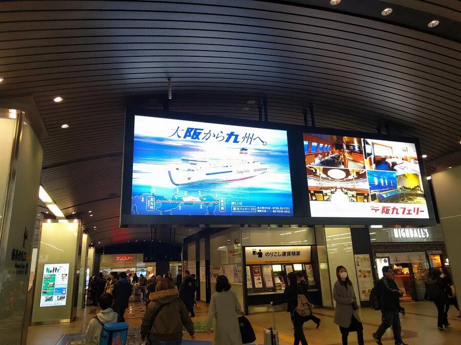 難波駅にある広告媒体の種類は豊富で、駅貼ポスター広告やSP広告の他にもデジタルサイネージ広告が多く存在しています。特にその中でも大型のデジタルサイネージ広告が登場しています。