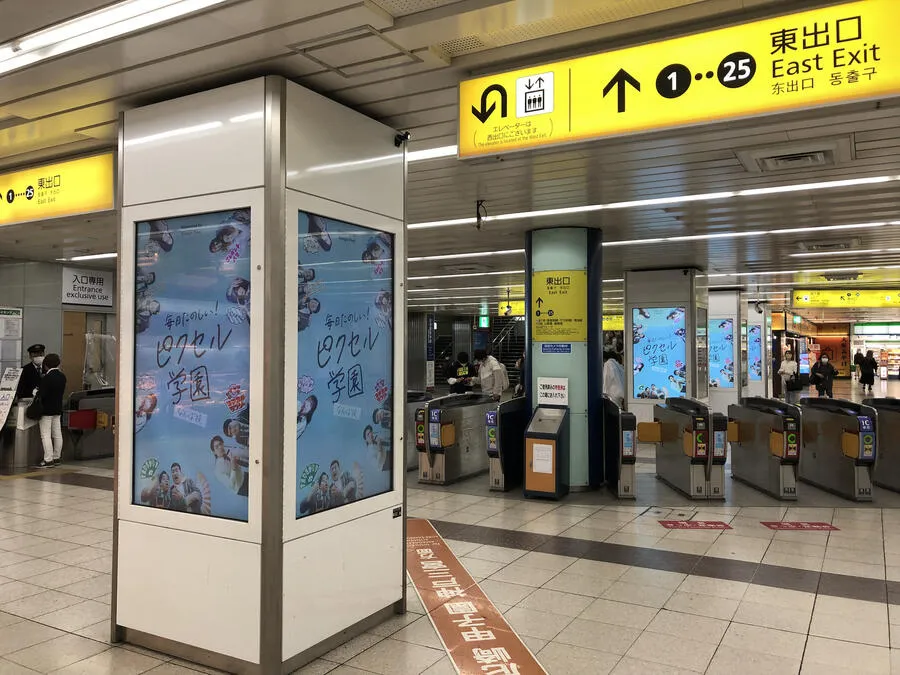 東改札内に連立して設置されているので、より多くの人に向けてPRが可能です。