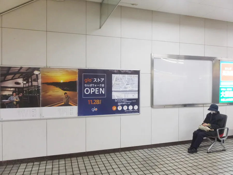 なんば駅の南北自由通路の改札外コンコースに設置されている単貼ポスター広告です。