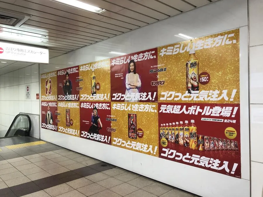 近鉄大阪難波駅の改札内の壁面に設置されている大型ポスター広告です。