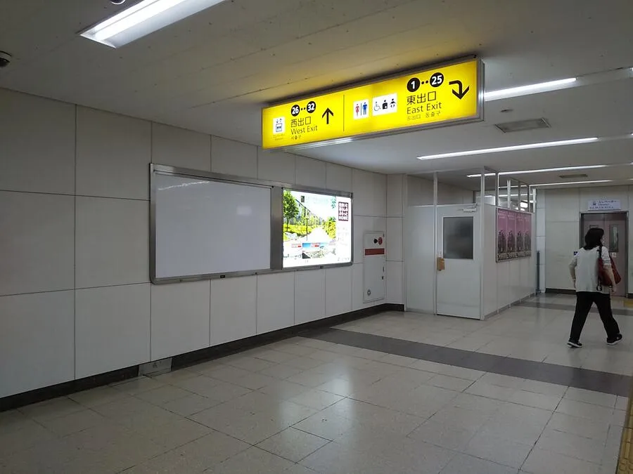 東改札とホームを行き来する駅利用者に向けて、集中掲出感があるので効果的に訴求できる広告媒体です。