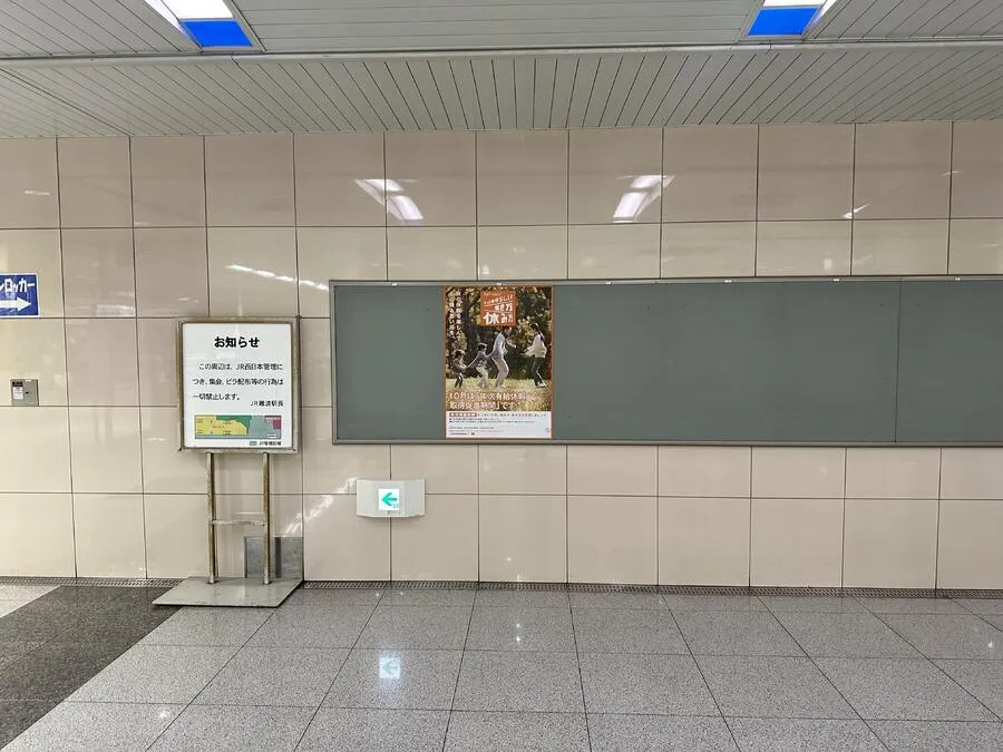JR難波駅の改札外コンコースの壁面に設置されている駅貼ポスター広告です。