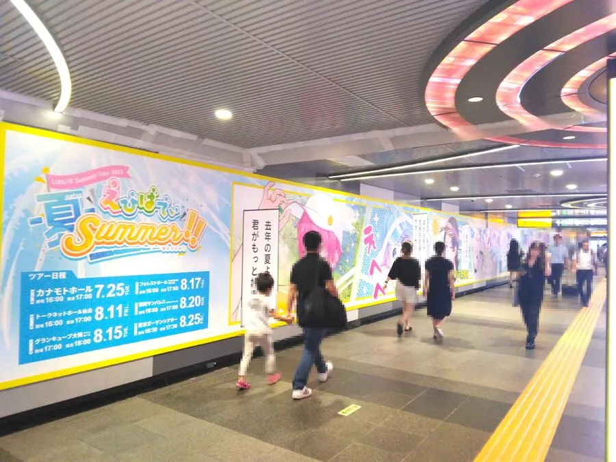 渋谷駅の駅貼ポスターは各路線で単貼り、連貼り、集中貼りなど目的や予算に合わせて様々な展開が可能です。渋谷駅の大型ポスターは写真映えすることでSNS等での認知度も高く、アイドル、アニメなどの推し活向けの出稿が多い印象です。