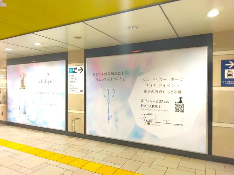 表参道駅の特殊広告には、柱巻広告やLED電照広告があります。表参道駅の中でインパクトを放つので視認性が高い媒体です。