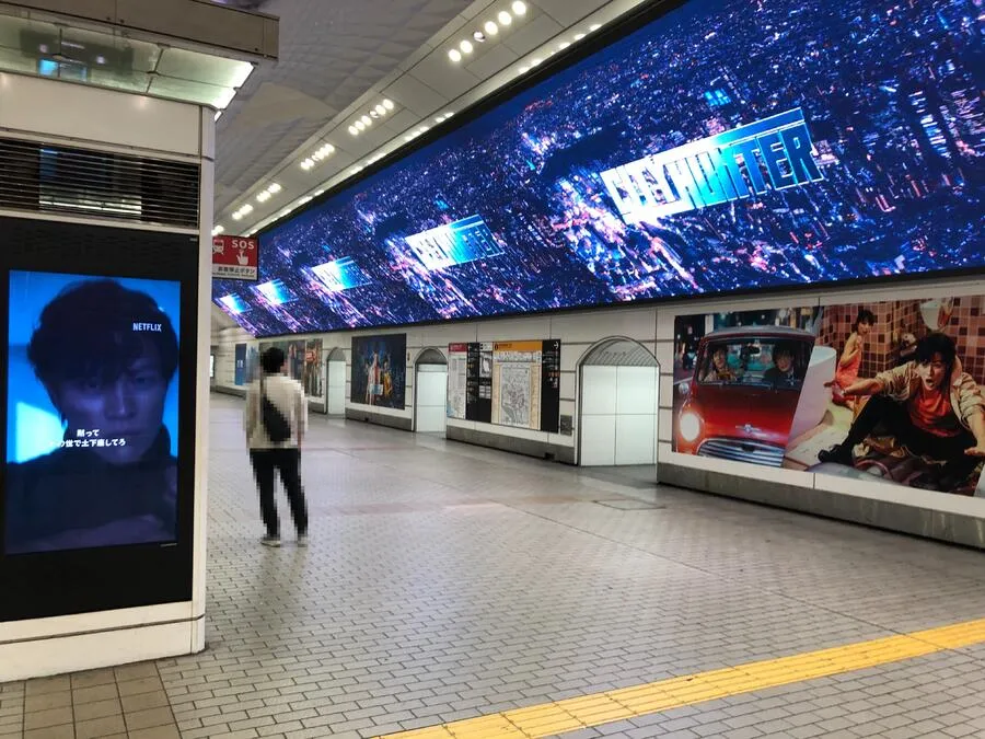 デジタルサイネージは複数のビジョンが連続的に設置されていたり、大型ビジョンを使用しているなど、視認性をさらに高めるための工夫がされていることが多いです。また、これらを同じ駅で複数組合せて同時展開すると、駅全体で一体感が生まれ「ジャック感」が出ます。ジャック媒体はラグジュアリーブランドやエンタメ系での実施が多く華やかな展開となります。