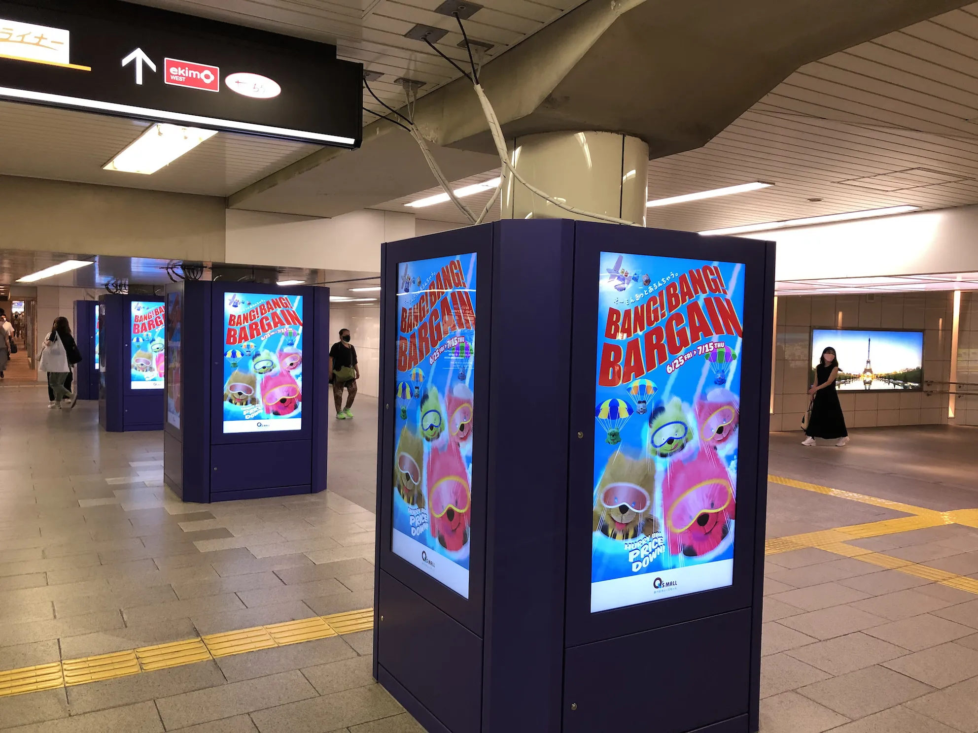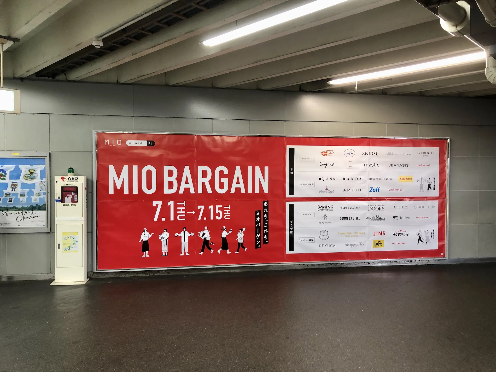 駅から各方面へと向かう前の階段や、通路に掲出することによって、バーゲンがどんなところで開催されているのか、見ている人の行動に影響を与えることができるかもしれませんね。