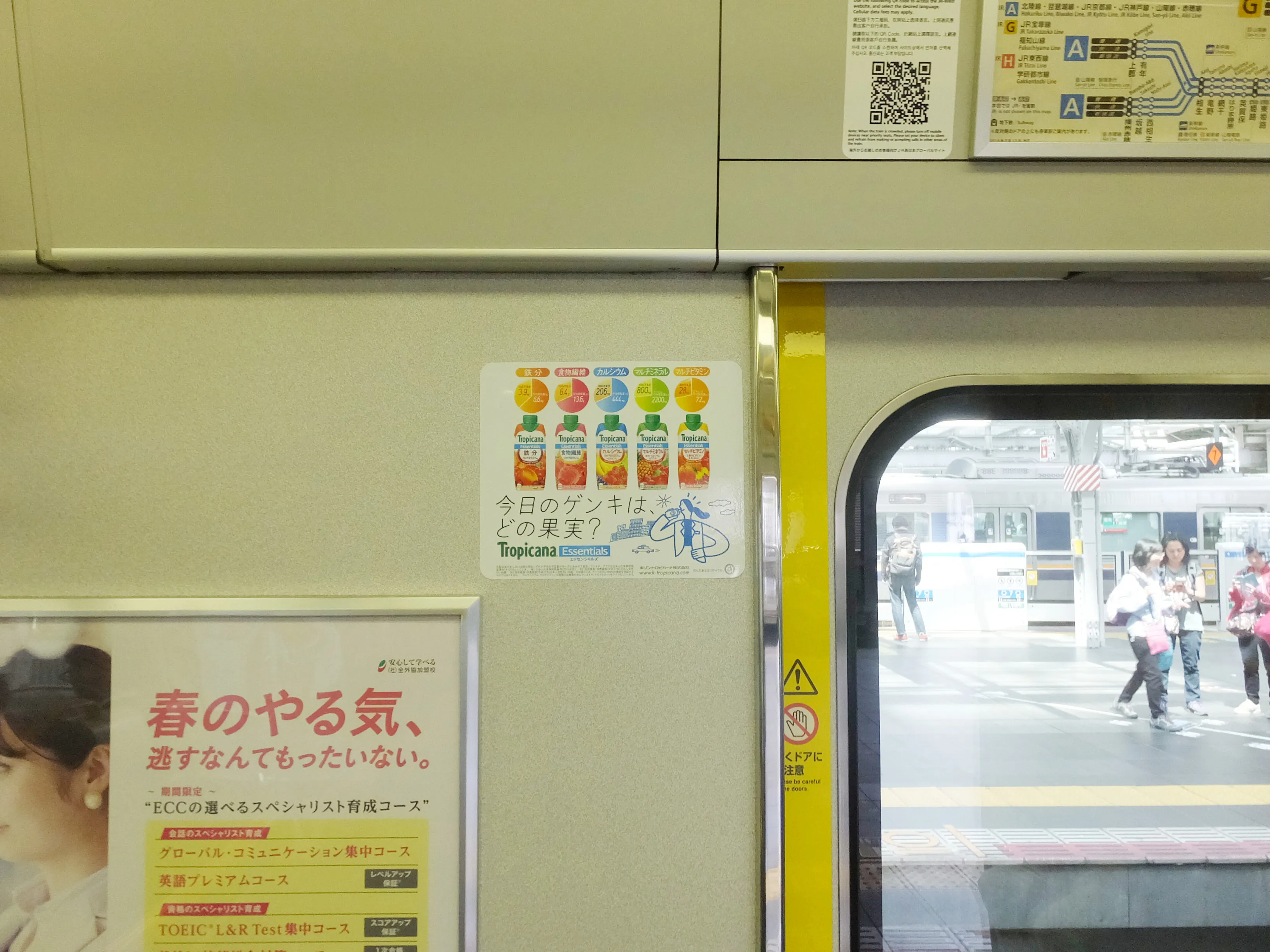 普通車もしくは快速車の全車のドア横に設置されているステッカー広告です。
