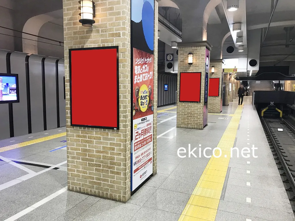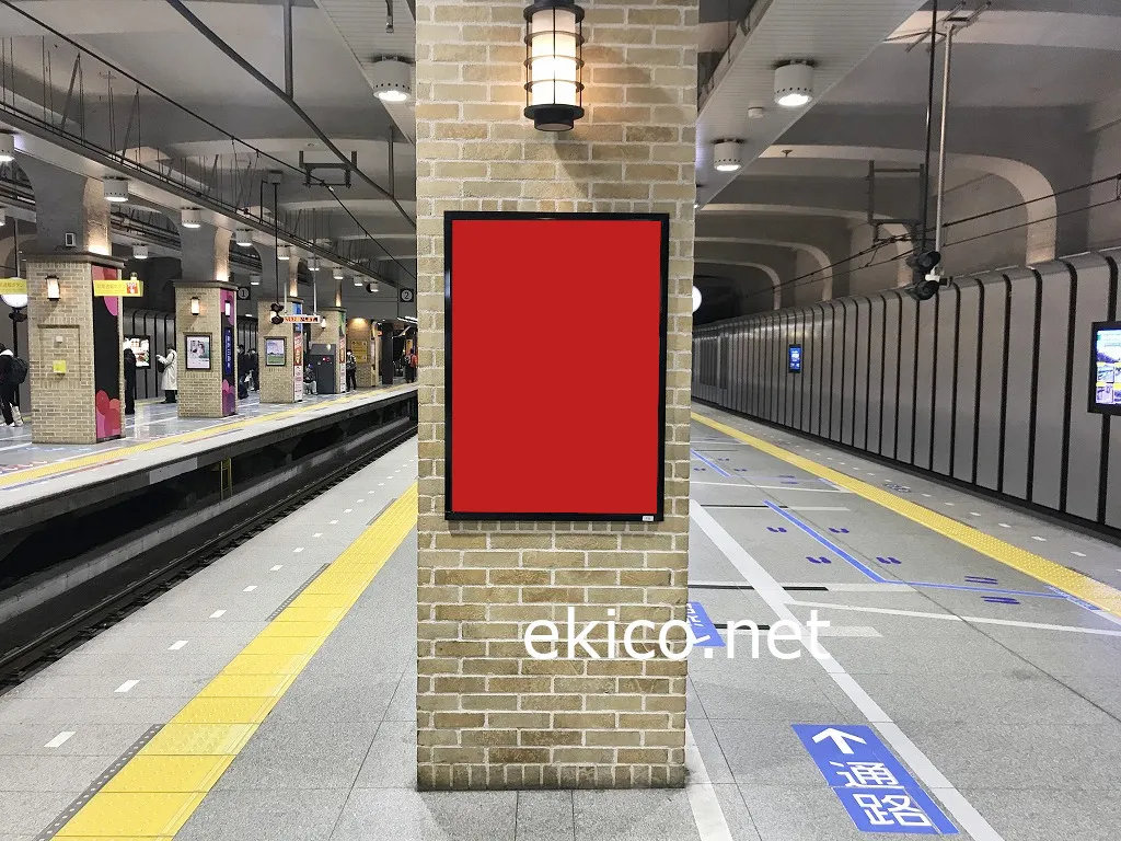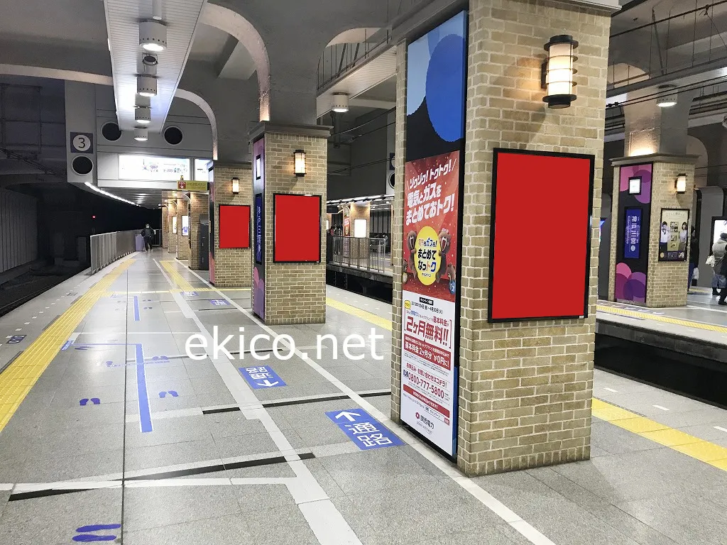 阪神神戸三宮駅の上り・下りホームに設置され視認性の高い単駅ポスターセット広告です。