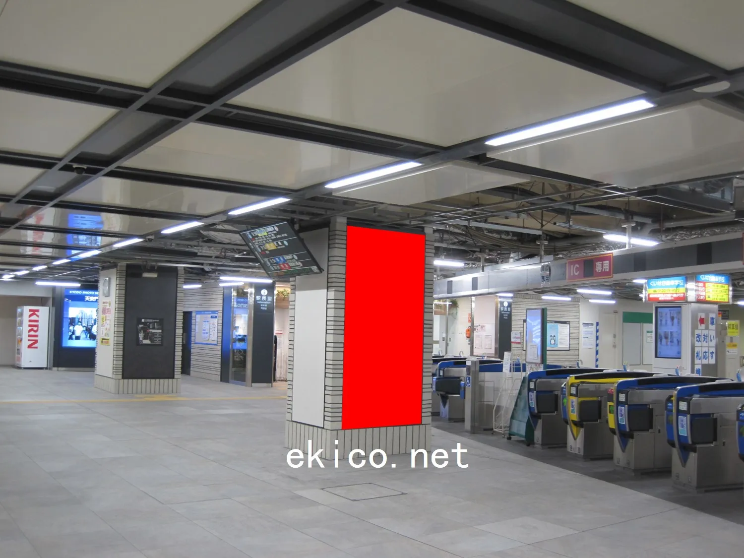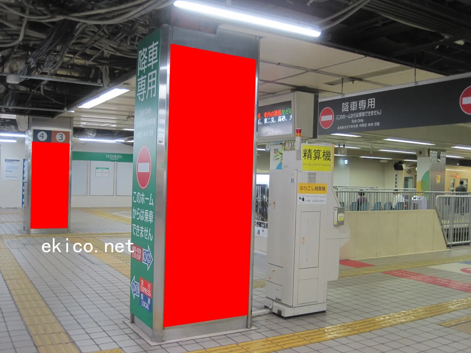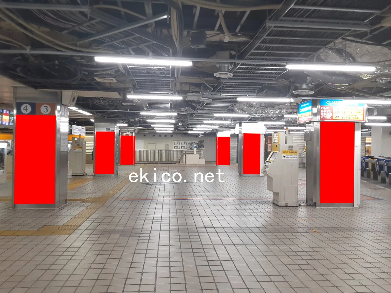 阪神大阪梅田駅でもっとも人通りが多く、阪急・Osaka Metro・JR西日本各方面へ向かう東改札内の柱3本を使用し、全6面で展開する媒体です。