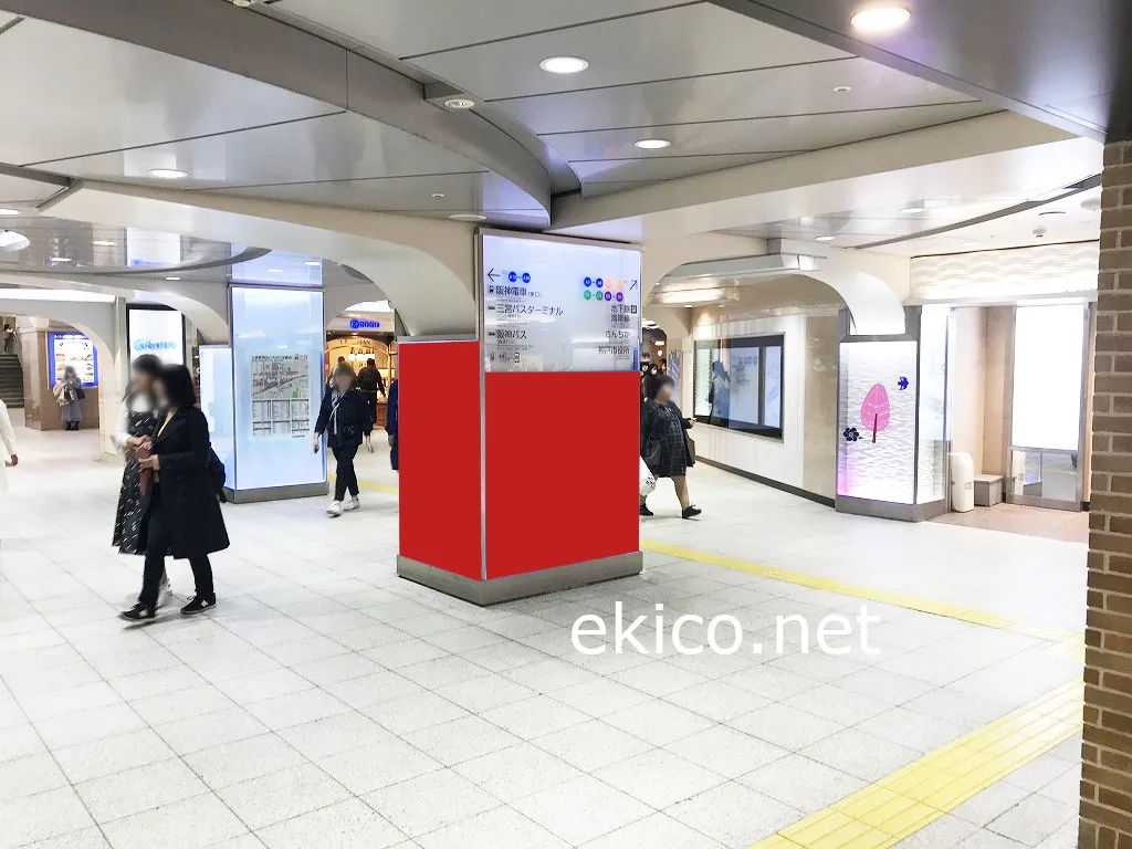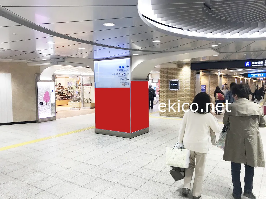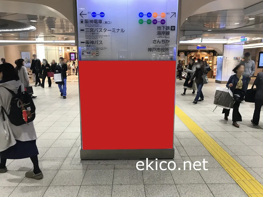 阪神神戸三宮駅西口改札外 誘導標記付随柱面
