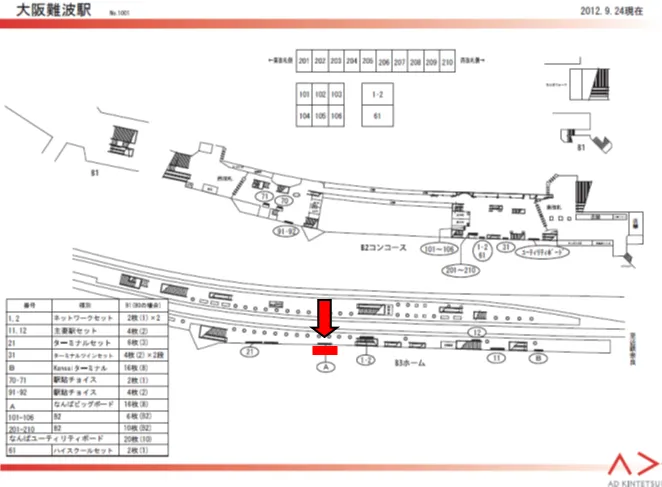 駅 | 大阪難波駅 | 開始日 | 月曜日 |
