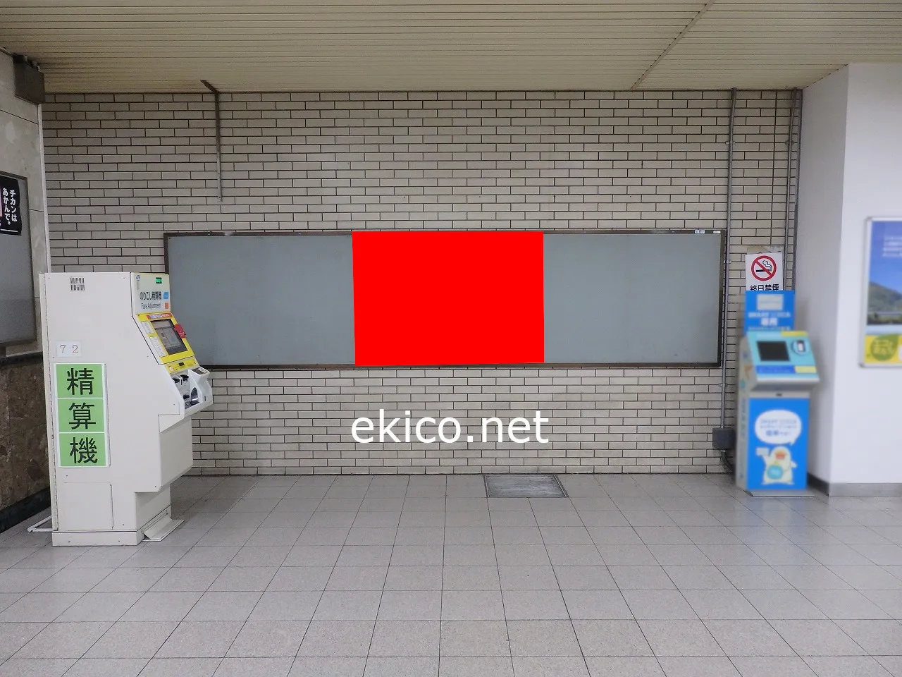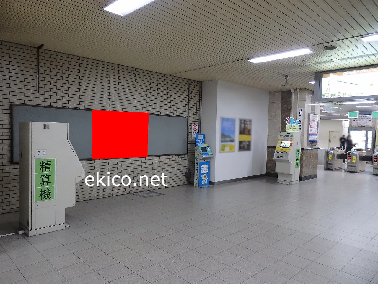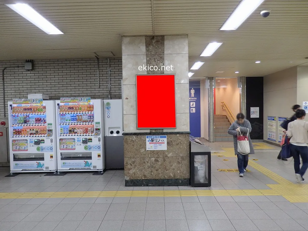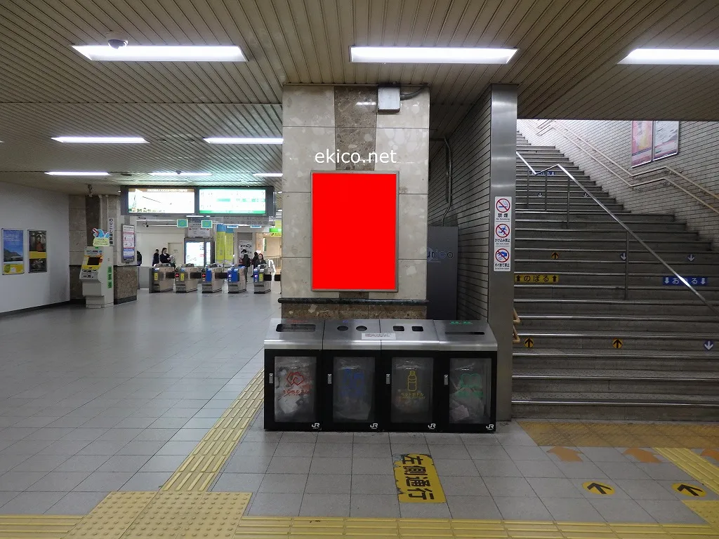コンコース階(階段廻りと改札周辺)にポスターボードがあります。1枚・7日間単位で短期間からポスター枠をご利用いただけます。