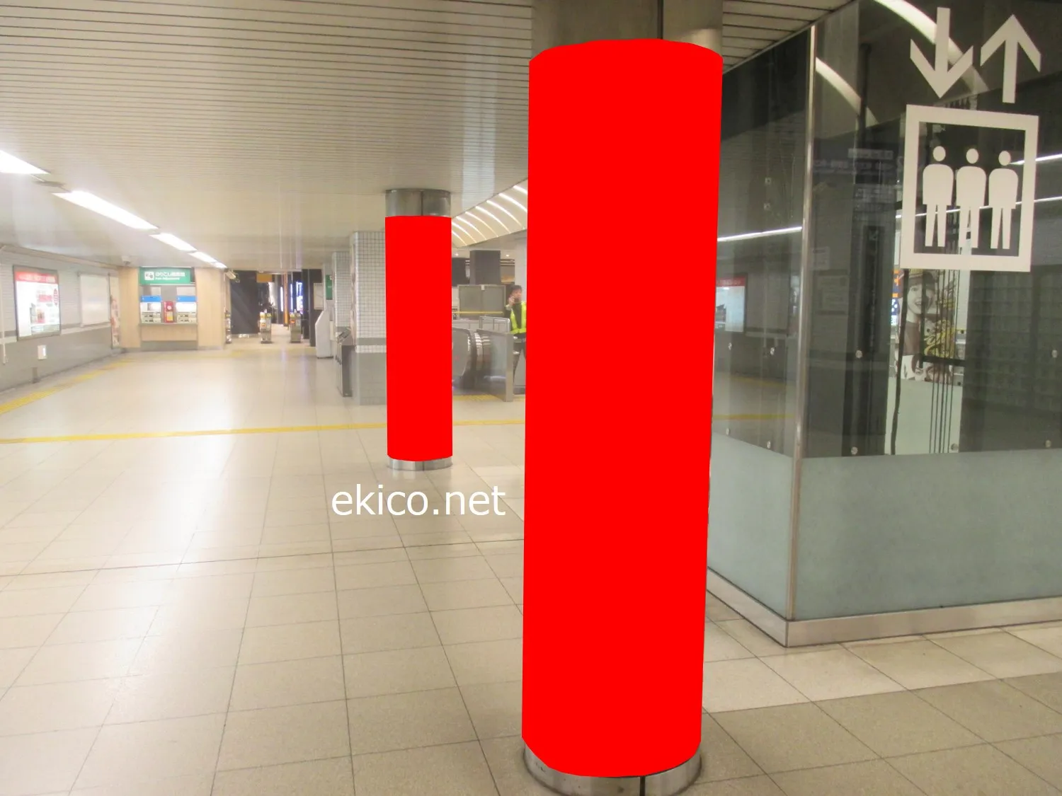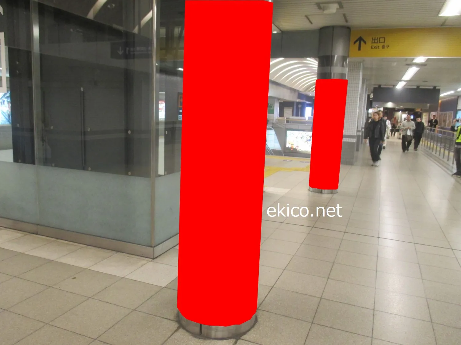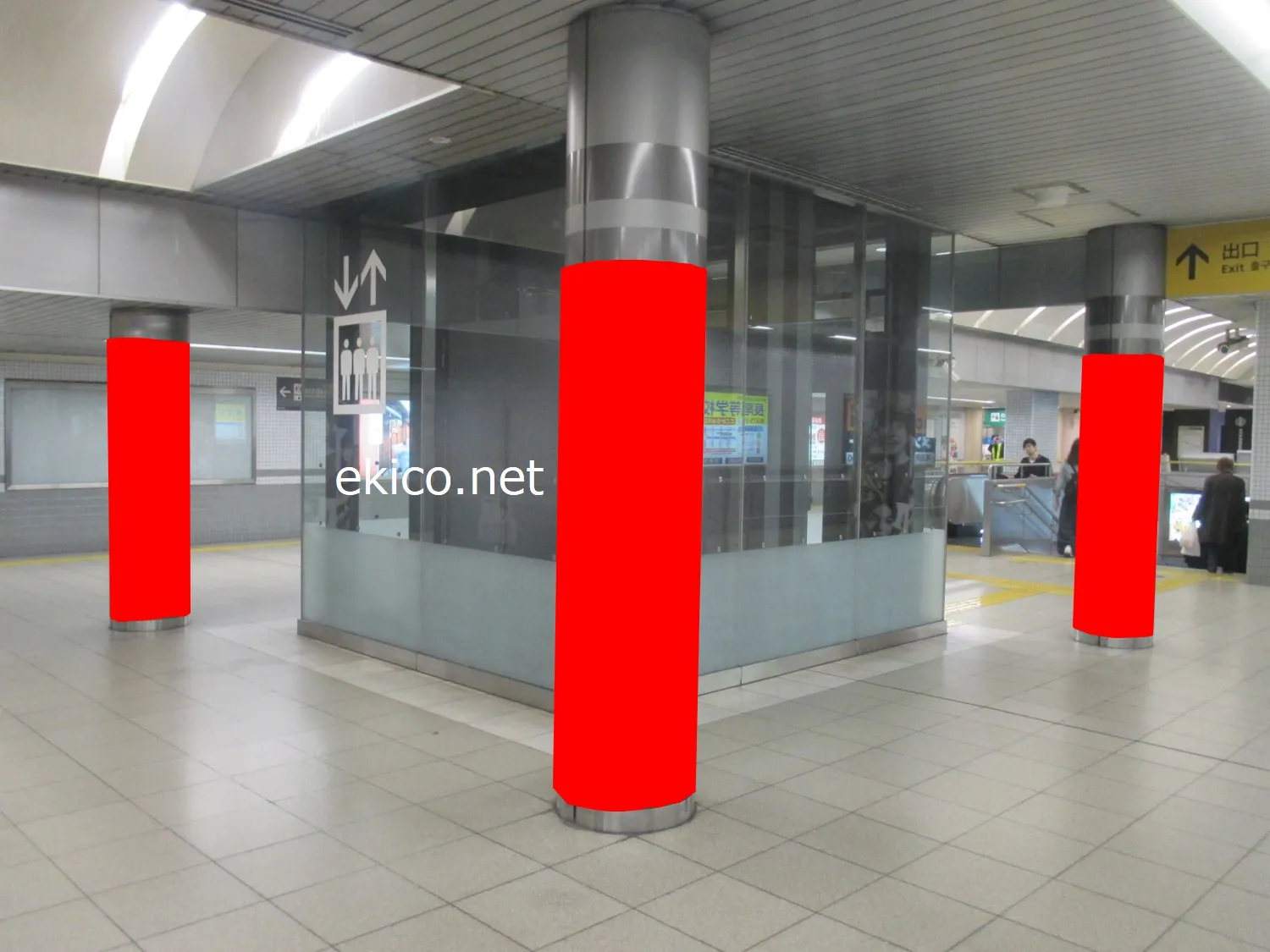 祇園四条駅の改札内コンコース中央部に設置されている、柱巻き広告です。