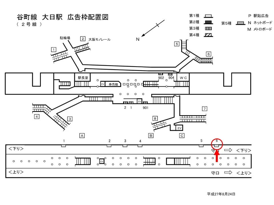 【看板】Osaka Metro大日駅 ホーム No.1-6