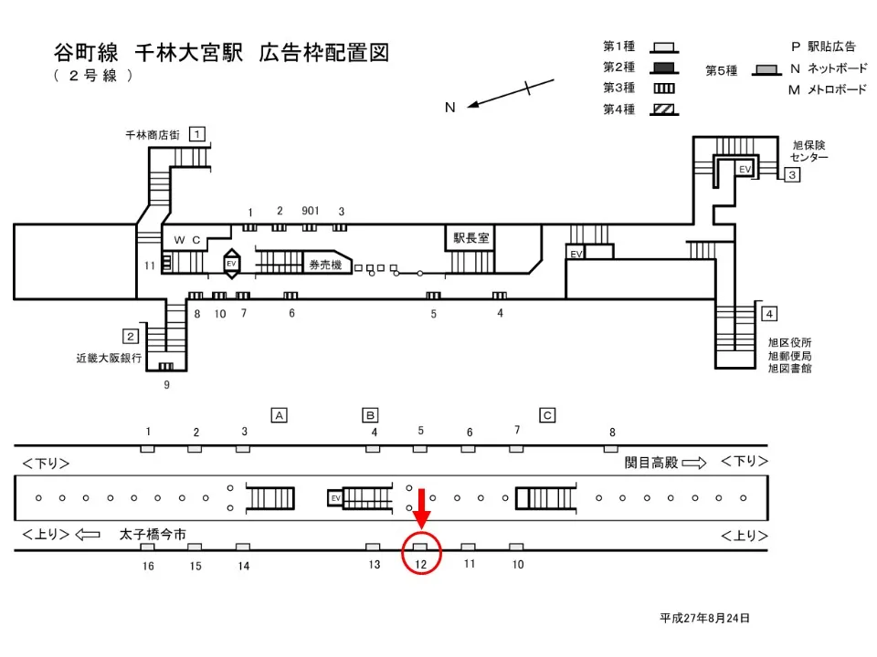 【看板】Osaka Metro千林大宮駅 ホーム No.1-12