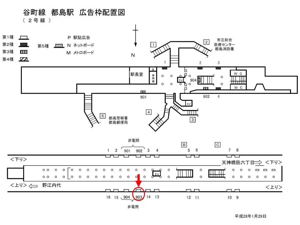 【看板】Osaka Metro都島駅 ホーム No.1-903