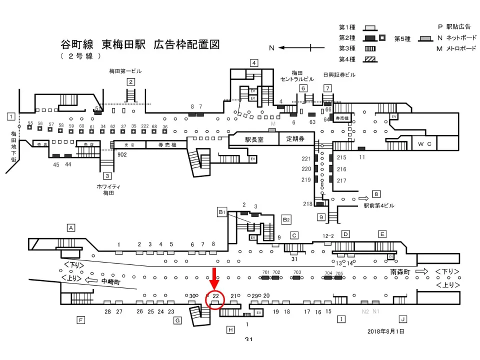 【看板】Osaka Metro東梅田駅 ホーム No.1-22
