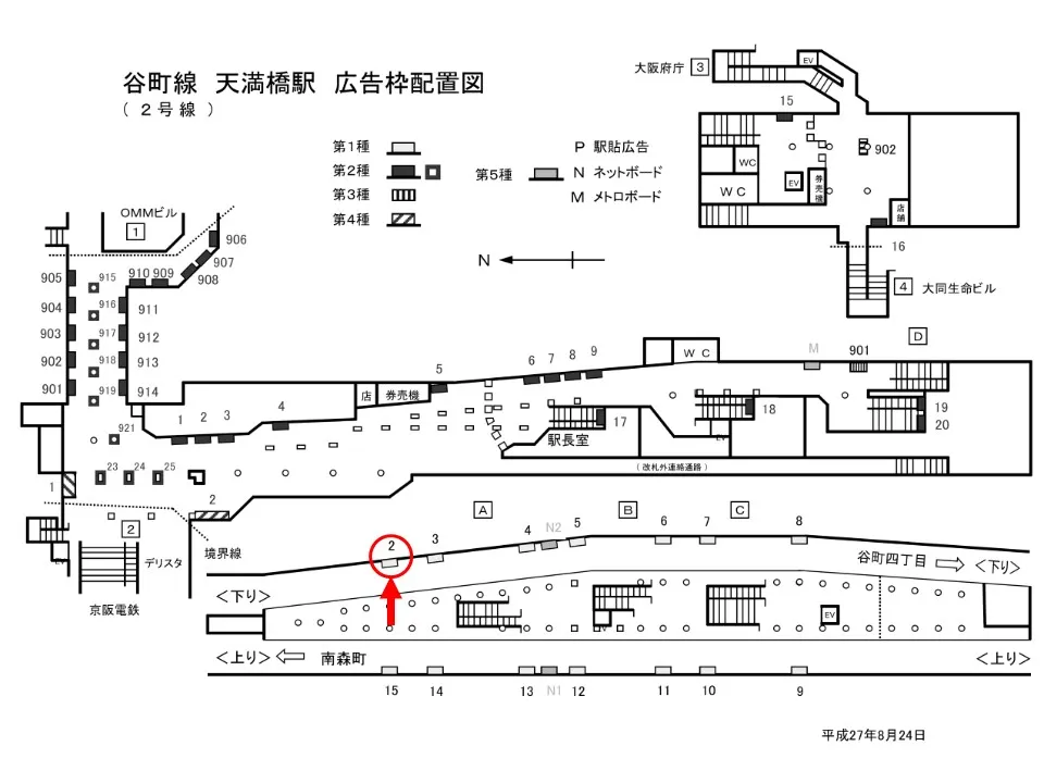 【看板】Osaka Metro天満橋駅 ホーム No.1-9