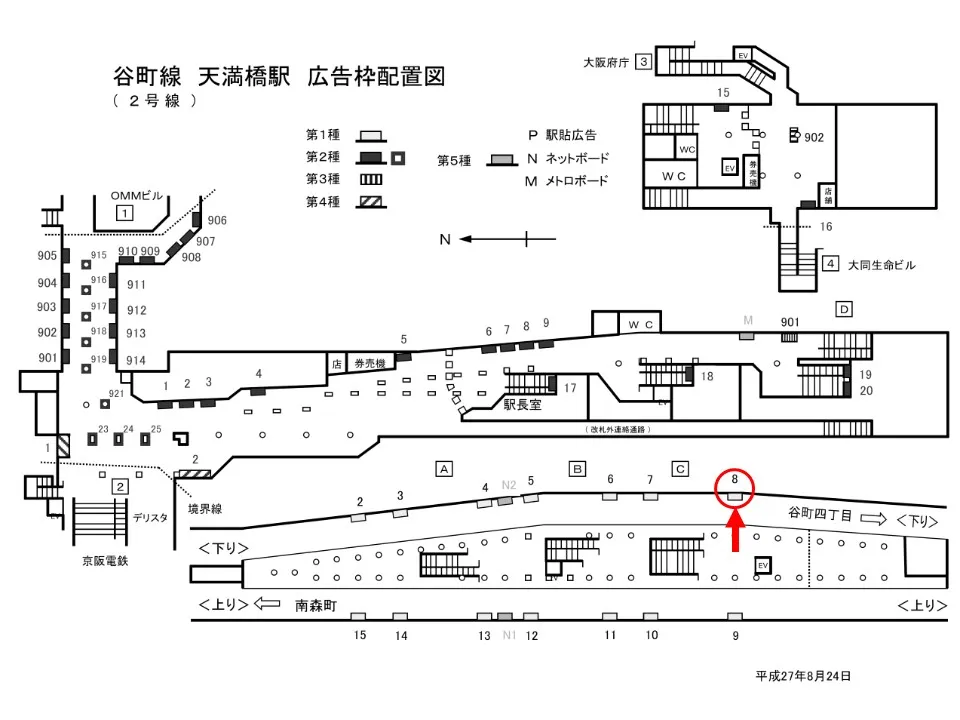 【看板】Osaka Metro天満橋駅 ホーム No.1-8