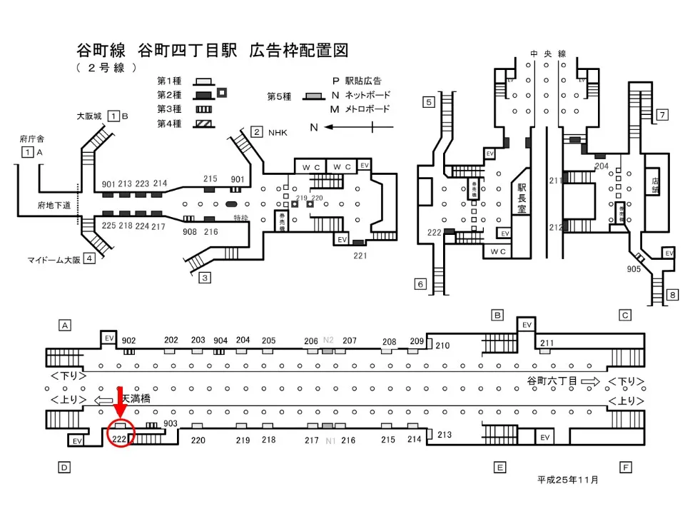 【看板】Osaka Metro谷町四丁目駅 ホーム No.1-222