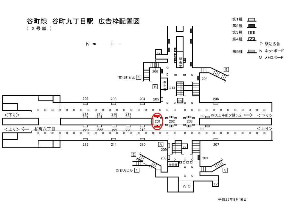 【看板】Osaka Metro谷町九丁目駅 ホーム No.3-201