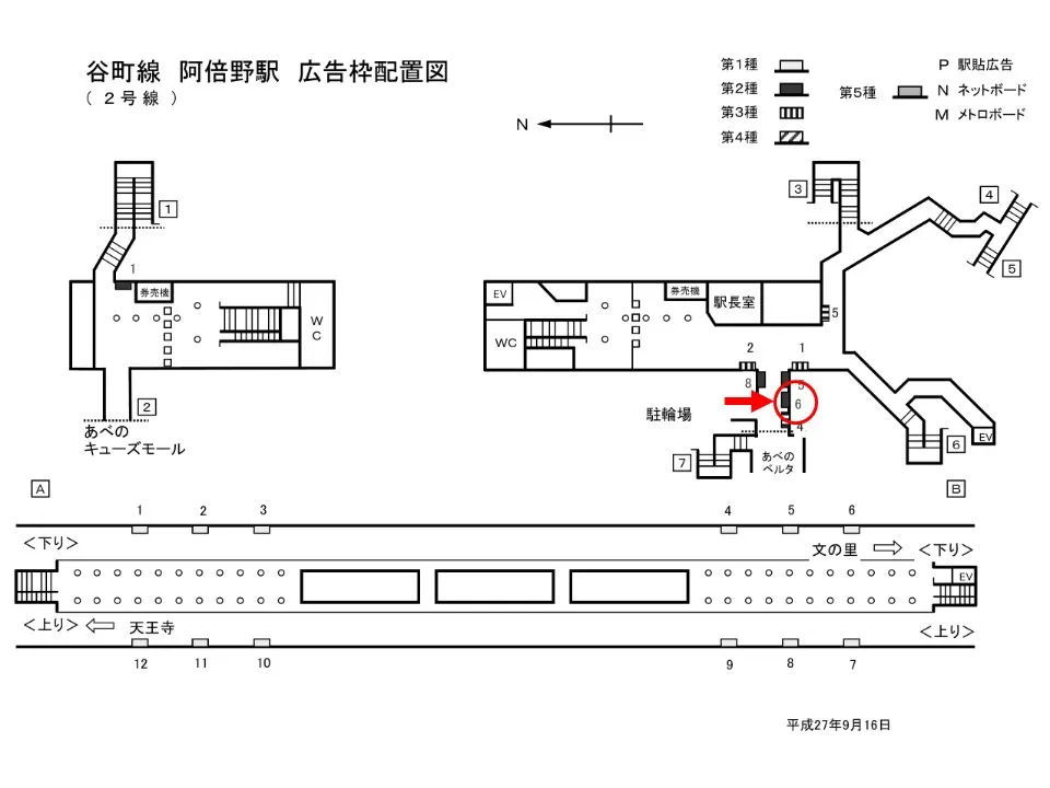 【看板】Osaka Metro阿倍野駅 ホーム No.1-6