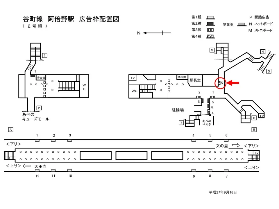 【看板】Osaka Metro阿倍野駅 ホーム No.1-7