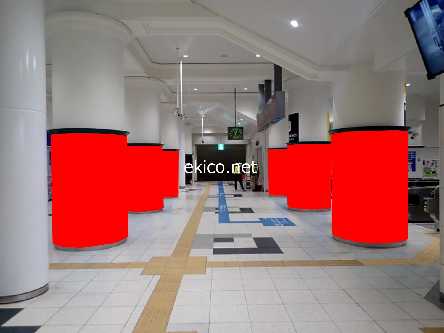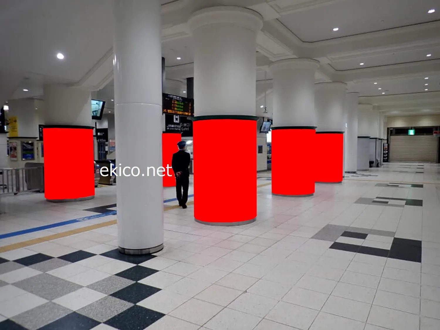 流動の多い東口改札正面に面した柱巻広告です。ポートライナーからの乗換え客にも目が当たる媒体です。